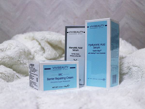 由左至右分別是水保飽乳霜.杏仁酸跟玻尿酸.